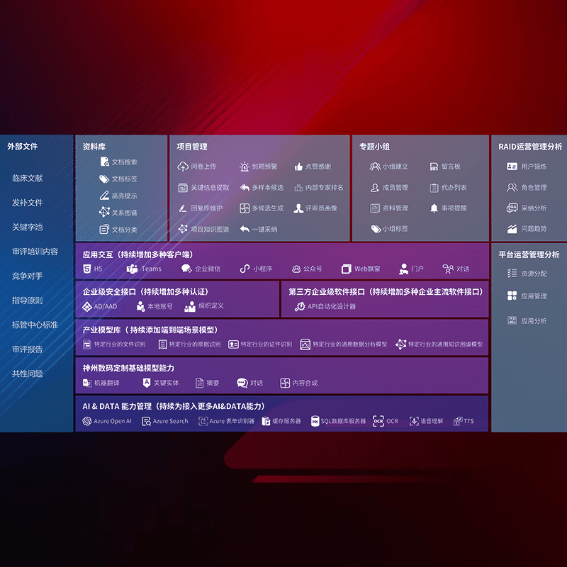 医疗器械产品上市前,,,要熟悉严格与繁复评审标准,,,整理分析监管机构指导文件中的海量信息。。。企业急需一个智能化解决方案,,,,提升知识管理效率,,,,提高评审通过率,,以提升其市场竞争力。。。。